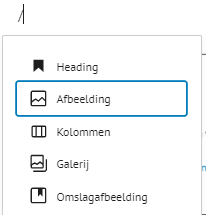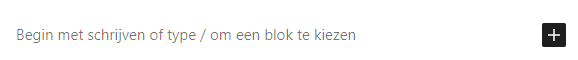 Een nieuw bericht of pagina begint vrijwel altijd op de volgende manier, voor de Afbeelding kun je ook een ander blok naar keuze invullen.