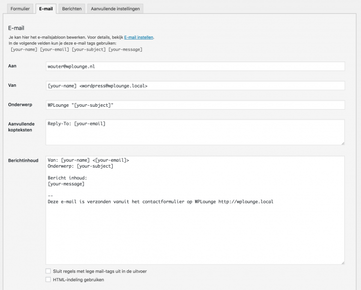Contactformulier gemaakt met Contact Form 7 van WPLounge