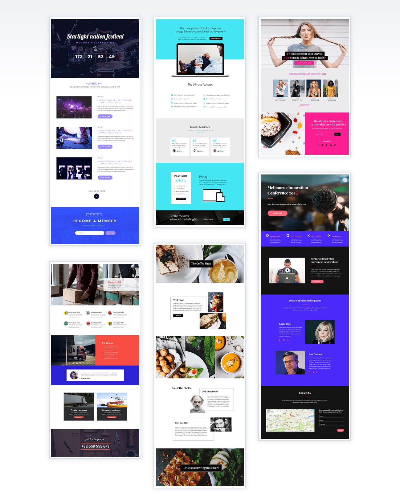Net als bij Divi kun je met Elementor layouts (“templates”) opslaan in je bibliotheek. Maar als je gebruik maakt van de Pro-versie, krijg je ook een grote bak aan standaard templates die je direct kunt gebruiken om je pagina’s mee op te bouwen: