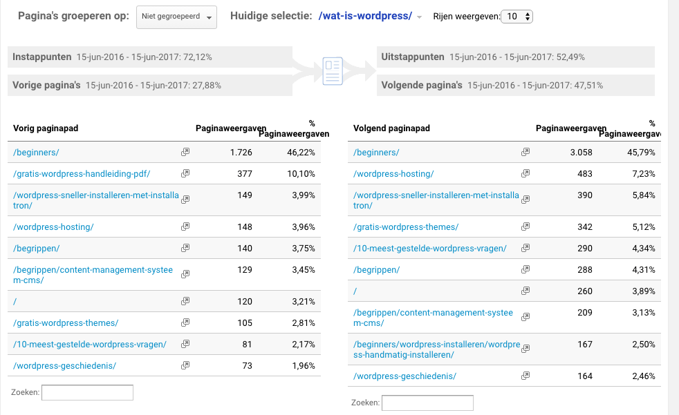 navigatie-overzichtWe kunnen zo zien dat de meeste bezoekers van deze pagina vanaf de /beginners/ pagina komen en ook de meeste bezoekers daarheen gaan vanaf deze pagina. Erg handige informatie!