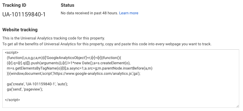 Google Analytics geeft je nu een trackingcode voor jouw website: