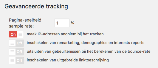 Zorg dat je deze instelling op “On” hebt staan, zodat het IP-adres van je bezoekers niet met Google wordt gedeeld.