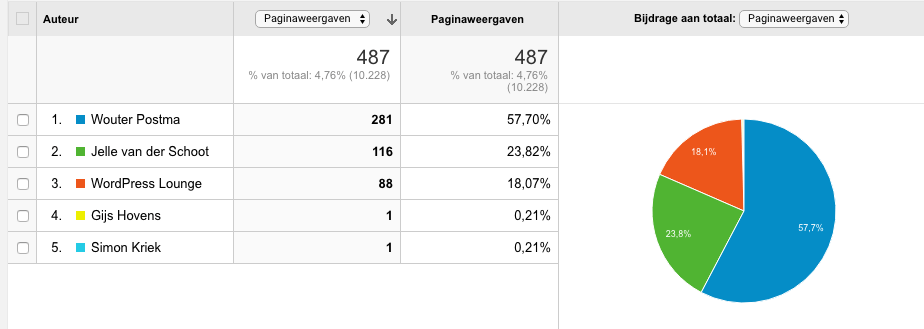 Zo kunnen wij per auteur zien hoe veel paginaweergaven deze auteur heeft gehad (klik op de afbeelding voor groter):
