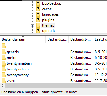 - wp-content folder: het bevat de primaire inhoud van je website, zoals thema’s, uploads en plugins. Wanneer je een backup maakt, controleer dan of de bovengenoemde drie mappen erin staan. Het is de meest cruciale map die nodig is voor een backup van de site, anders is al die inhoud waaraan je hebt gewerkt verdwenen.
